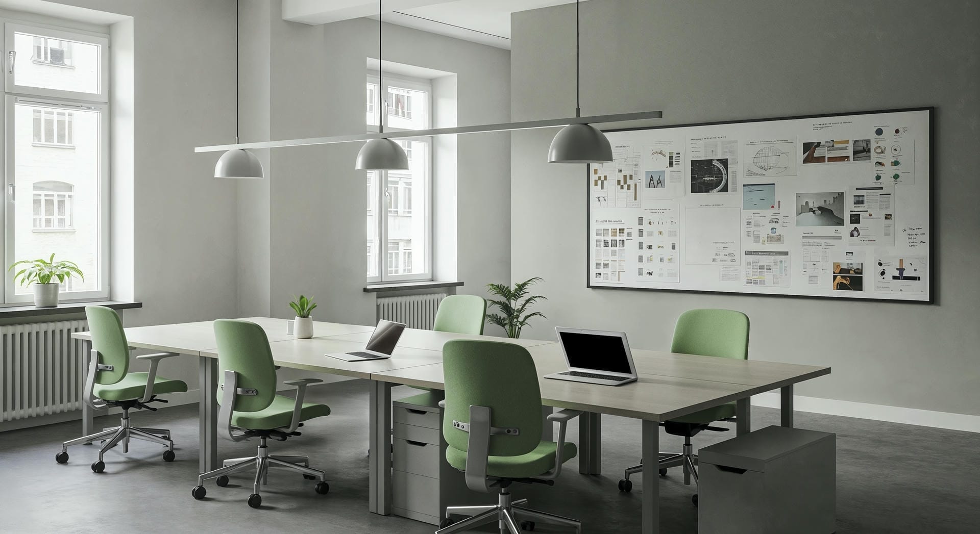 Gunakan elemen desain yang netral namun tetap menarik. Warna-warna natural, material ringan, dan pencahayaan yang bisa disesuaikan akan membuat kantor tetap stylish meski sering diatur ulang.