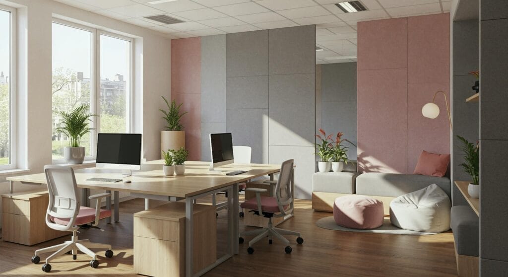 Jika ruangan terlalu ramai atau bising, gunakan panel akustik tempel atau karpet tebal untuk meredam suara. Efeknya bukan hanya lebih tenang, tapi juga lebih profesional.